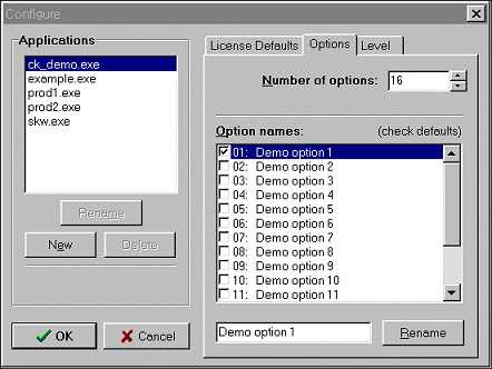 Level ¹× Option ¼³Á¤ ±ÍÇÏÀÇ ÇÑ Á¦Ç°ÀÌ ¿©·¯ °³ÀÇ ¸ðµâµé·Î ±¸¼ºµÇ¾î ÀÖ°í °¢ ¸ðµâ¸¶´Ù ÆÇ¸Å°¡°ÝÀÌ º°µµ Ã¥Á¤µÇ¾î ÀÖ¾î À̵éÀÇ ÀÓÀÇÁ¶ÇÕÀ¸·Î Á¦Ç°À» ´Ù¾çÇÏ°Ô ¹èÆ÷ ÆÇ¸ÅÇϰíÀÚ ÇÒ ¶§, ÀÌ¿¡ ´ëÇÑ ÇÁ·ÎÅØ¼Ç°ú »ç¿ë±ÇÇÑ ºÎ¿©µîÀ» ÅëÇÕ °ü¸®ÇÒ Çʿ䰡 ÀÖÀ¸¸ç ÀÌ °æ¿ì¿¡ CrypKey InstantÀÇ Level°ú Option ±â´ÉÀ» »ç¿ëÇÕ´Ï´Ù. ¿©±â¼, Level°ú OptionÀº ÇÕÇØ¼ ÃÑ 32 bit·Î Á¦ÇÑµÇ¸ç ¿¹¸¦ µé¾î, ±ÍÇÏ Á¦Ç°¿¡ 28°³ OptionÀ» ¼±ÅÃÇÑ °æ¿ì ³ª¸ÓÁö 4 bit¸¸ÀÌ Level Á¤º¸·Î »ç¿ëÇÒ ¼ö ÀÖ½À´Ï´Ù. Levels